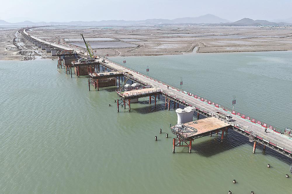 26日,漳汕高铁福建段东山跨海特大桥完成首榀箱梁架设,标志着漳汕高铁全线进入跨海大桥架梁施工阶段。此次完成架设的东山跨海特大桥全长20.26公里,是漳汕高铁全线最长的跨海桥梁。
