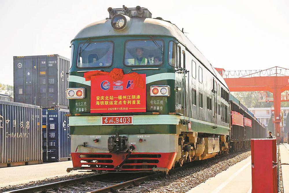 近日,安庆北站—福州港江阴港区集装箱海铁联运定点专列顺利抵达江阴港区(如图)。此次专列满载48个40英尺集装箱货物,跨越千里贯通皖闽两省,是江阴港区集装箱海铁联运辐射范围首次延伸至安徽腹地市场。