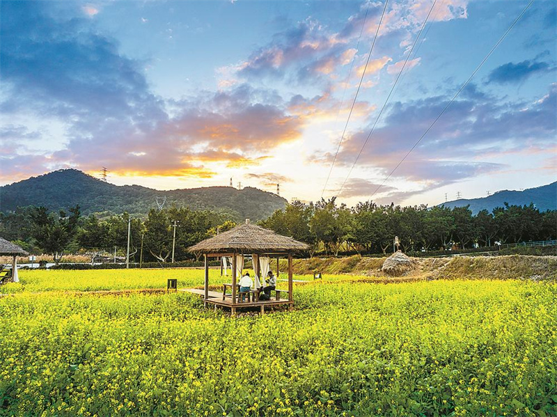 初冬时节,在位于厦门市海沧区天竺山西门的“知稻稻田咖啡”农耕研学基地,大片金黄油菜花海开始绽放,在冬日里形成了一幅清新的田园画卷。(林旭东 摄影报道)