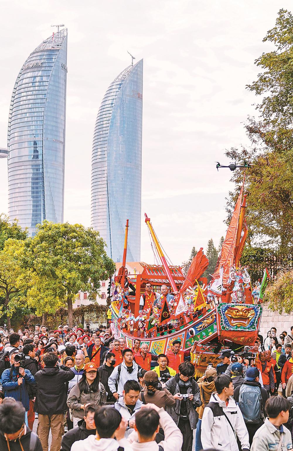 14日,第十二届厦港送王船活动暨首届中马联合“送王船”活动在厦门举办。王船长8.88米、宽2.36米,风帆上的“海安号”三个字尤为醒目。