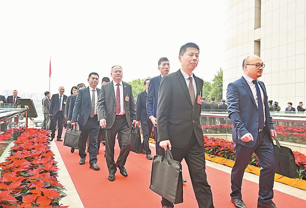 1月26日,参加省政协十三届四次会议的委员们步入会场。(