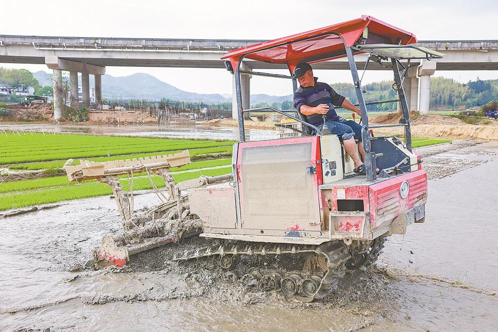 近日,在松溪县茶平乡的水田里,农户驾驶插秧机将嫩绿的秧苗种进田里。近年来,松溪大力推进农业机械化、智能化、低碳化转型,推动传统农业向绿色高效方向转变。(通讯员 李梦凌 记者 陈黎慰 摄)