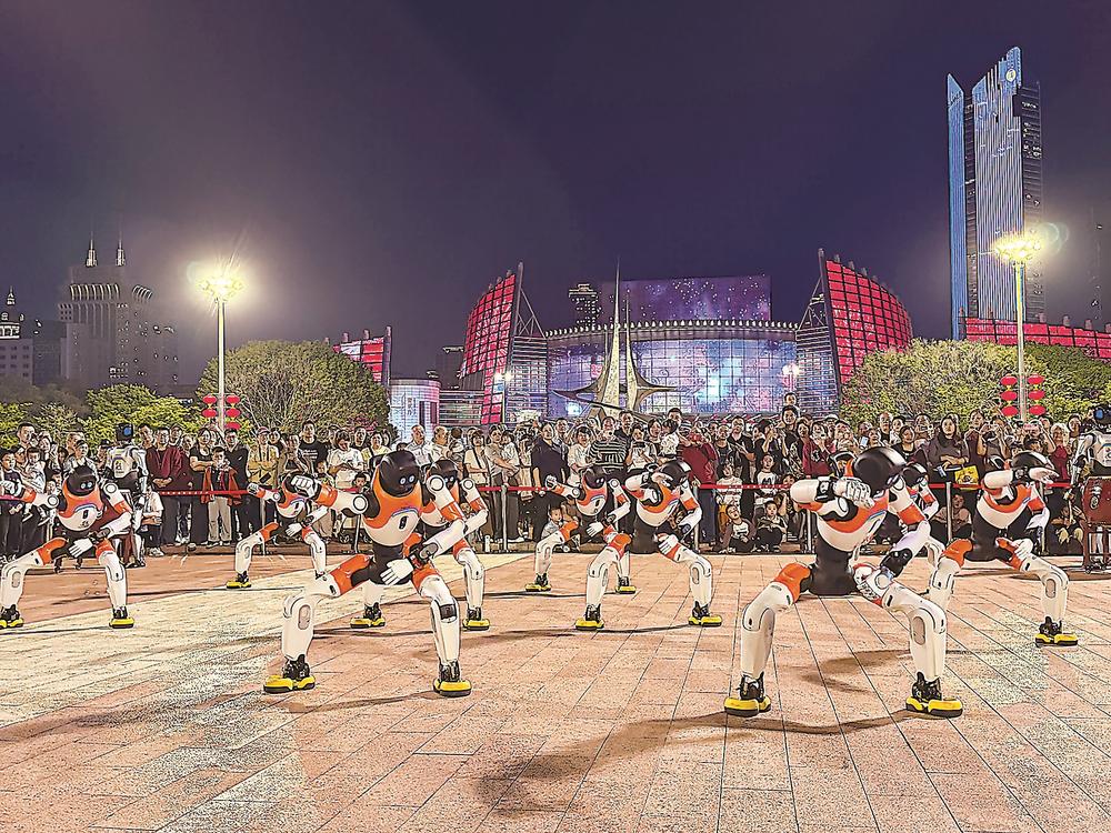 第九届数字中国建设峰会即将召开,福建省具福科技有限公司近日在福州五一广场举办具身智能机器人路演活动,为峰会预热。图为机器人表演舞蹈、功夫等节目,展现高灵巧运动与多模态交互能力,吸引市民关注数字峰会。(记者 张文奎 摄)