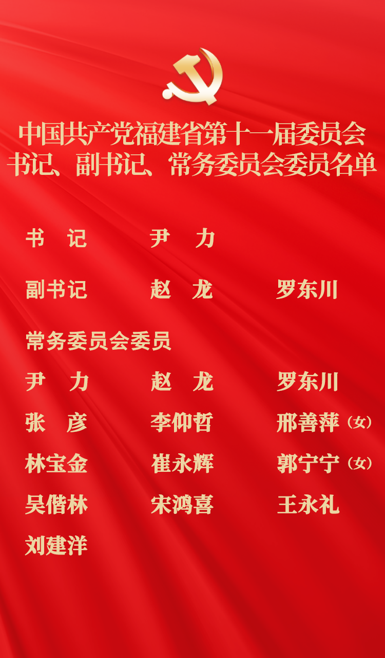 中共福建省第十一届委员会书记、副书记、常务委员会委员名单