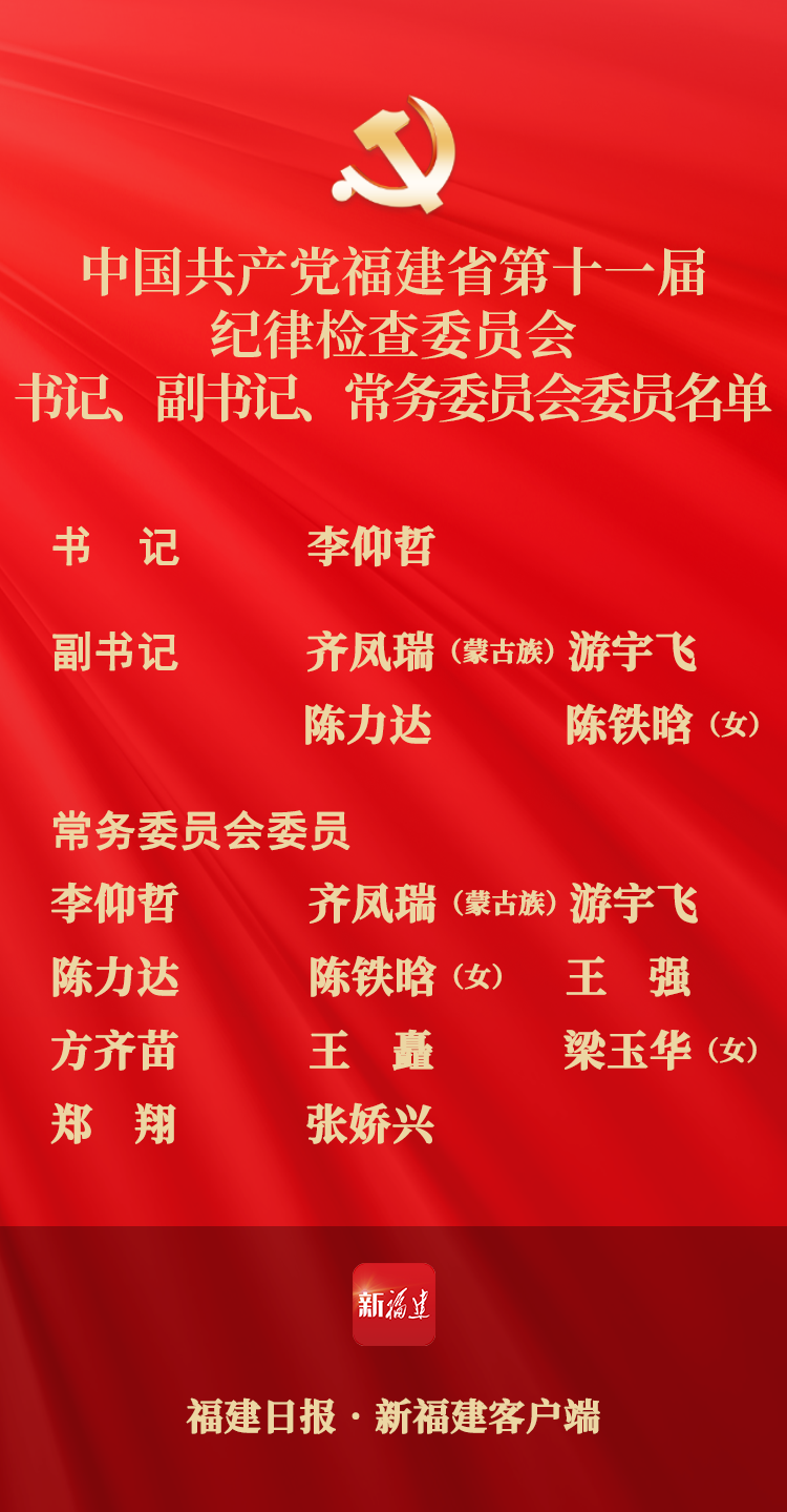 中共福建省第十一届纪律检查委员会书记、副书记、常务委员会委员名单