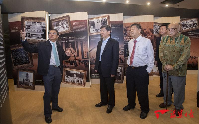 5月16日,福建省代表团在陈嘉庚长孙陈立人先生(右一)陪同下参观新加坡怡和轩先贤馆。