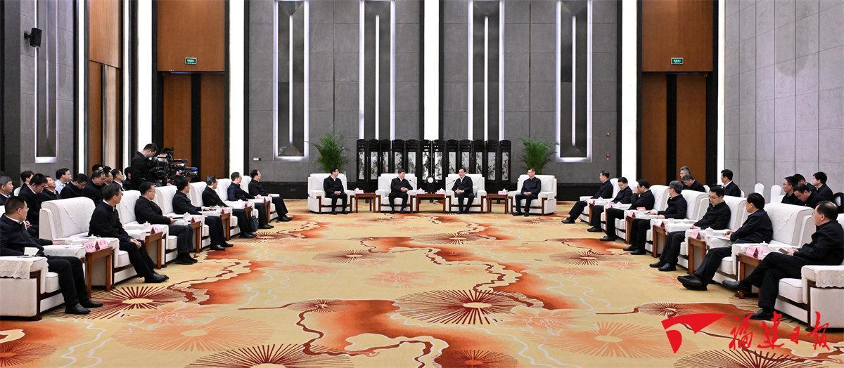 信长星、许昆林代表江苏省委、省政府对福建省党政代表团的到来表示欢迎,对福建长期以来给予江苏发展的大力支持表示感谢。信长星说,全国两会闭幕不久,福建省党政代表团前来考察指导、传经送宝,对我们深入贯彻落实习近平总书记重要讲话和全国两会精神、扎实推进中国式现代化江苏新实践是有力促进。福建是有“福”之地,是红色圣地、绿色宝地、开放高地、两岸福地、侨胞祖地。特别是作为习近平新时代中国特色社会主义思想的重要孕育地和实践地,习近平总书记亲自领导和推动了福建改革开放和现代化建设,留下了宝贵精神财富,至今仍彰显着超越时空的强大思想魅力与实践伟力。近年来,福建抓住机遇、加快发展,高质量发展迈出更大步伐,取得的成就令人钦佩,许多好经验好做法值得我们学习借鉴。江苏与福建同为沿海开放省份和“一带一路”重要枢纽节点,都承载着习近平总书记的深切关怀、殷切期望。希望两省优势互补、各展所长,在融入国家战略上同频共振,在服务构建新发展格局上共担重任,在推动区域协调发展上共谋合作,在产业链强链补链延链上协同发力,在发展新质生产力上共创优势,推动全方位交流合作再上新台阶,携手走好中国式现代化康庄大道。