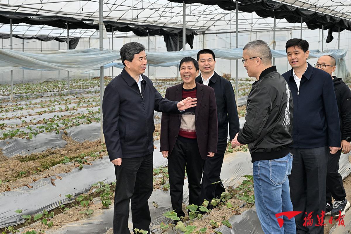 红土地绘就绿色生态画卷。走进位于连城县的世界地质公园冠豸山,丹霞冠翠竞秀,碧水波光潋滟。周祖翼一行登船,沿途详细了解自然与人文遗产保护、石门湖水资源保护和世界地质公园品牌、景区运营等情况,要求当地坚定不移保护好、管理好、利用好世界级地质资源,高标准、高品质规划建设景区,科学合理开发新业态、新产品,让水更清、山更绿、环境更美。要实施全域旅游战略,进一步推动景区联动,推动文旅资源整合提升、串珠成链。要守护文化根脉,传承好、利用好中华优秀传统文化,加强文化遗产保护,让历史文化与自然山水交相辉映。地瓜干是连城的一张“名片”。地瓜好不好,关键看种苗。在连城县地瓜脱毒种苗培扩繁基地,周祖翼听取地瓜产业发展和稻薯轮作、耕地保护等情况,走进示范推广种植田块察看地瓜长势,并与科技特派员互动交流,鼓励他们加快新品种推广,带动农民增收,把论文写在红色土地上。在基地育苗大棚里,周祖翼看到成片的薯苗叶绿藤壮、生机勃勃,十分高兴。他说,要牢固树立大农业观、大食物观,加快种业科技创新,立足特色优势把小地瓜做成大产业,因地制宜拓宽共同富裕有效路径。