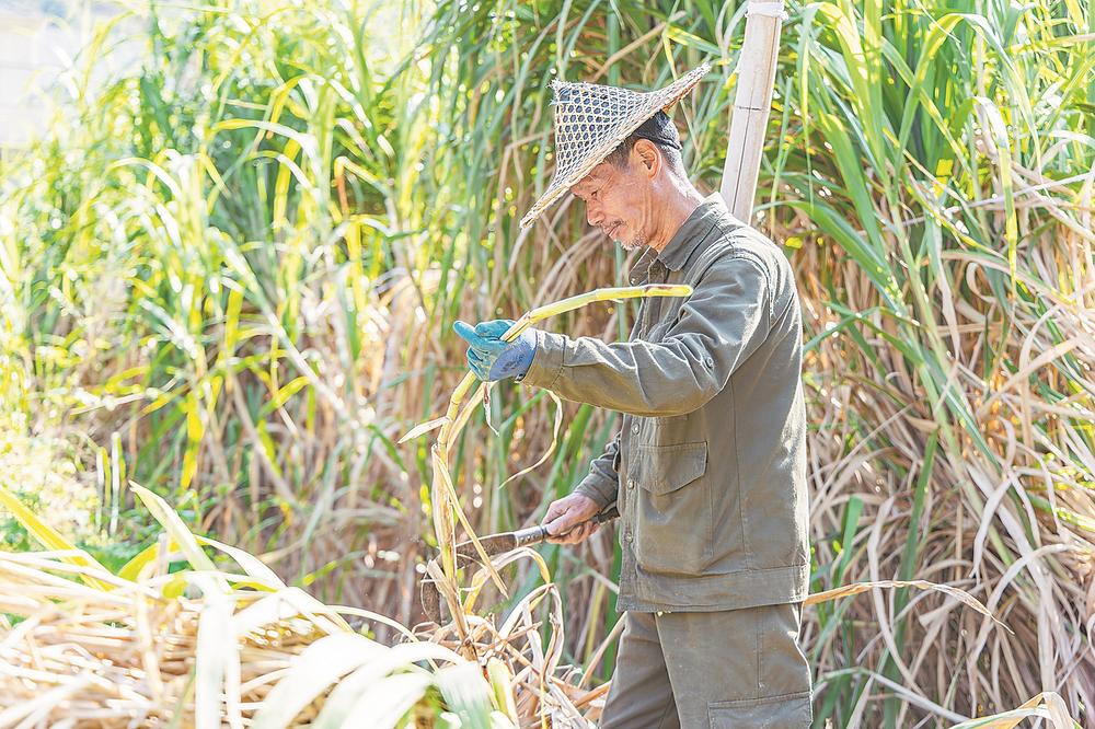 百年蔗是世界甘蔗宿根年限最长的品种,也是目前我国唯一仍然保存的传统制糖竹蔗品种。目前,松溪全县种植百年蔗2000多亩,百年蔗已从单一的制糖衍生出定制红糖、蔗酒、茶点、保健食品等一系列高端产品,助力百姓走上共富路。图为郑墩镇万前村蔗农收割百年蔗。记者 陈黎慰 通讯员 周燕兰 摄