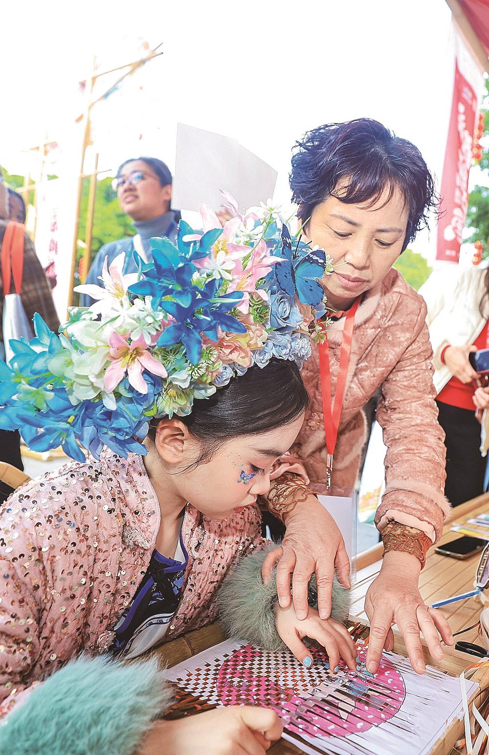 市集汇聚泉州丰富的非遗资源,展示世界级非遗5项、国家级非遗23项、省级非遗13项、市级非遗22项和区级非遗2项,包括泉州花灯、刻纸、水密隔舱福船制造技艺等代表性项目,实现从世界级到区级的全等级覆盖。市集还特邀福州、厦门、漳州、三明、莆田等地的代表性非遗共同参与,形成强大的“福建非遗天团”。活动期间,众多游客在现场亲手体验永春纸织画、德化瓷手拉坯等35项非遗技艺。