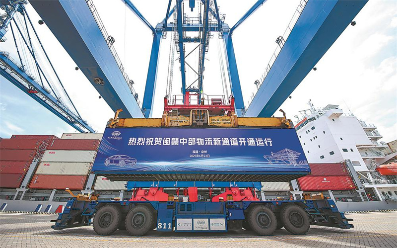 “抚州—泉州—泰国”海铁联运外贸集装箱轮首航。林劲峰 摄