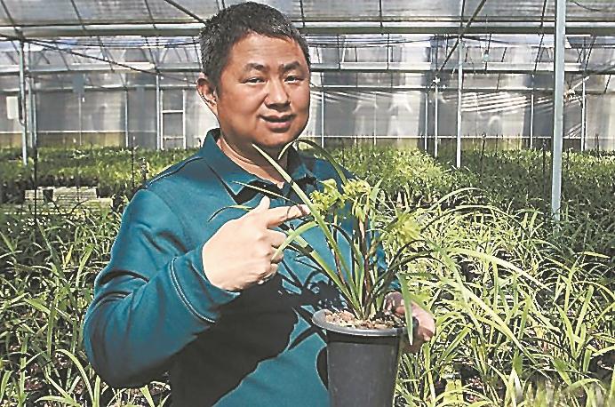 饶炎明展示兰花精品“花开富贵”。