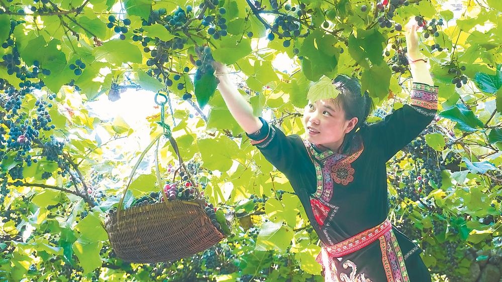 福安市穆云畲族乡溪塔村畲家女采摘刺葡萄。吴庆堂 摄