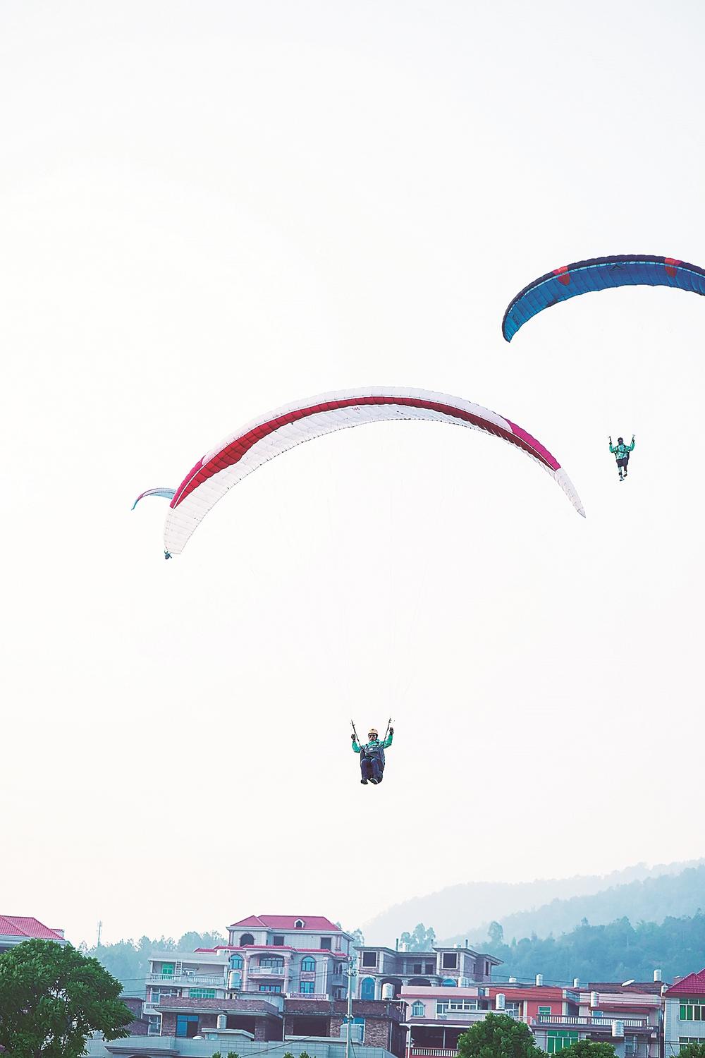 滑翔伞选手在南安市九都镇“逐风飞翔”。