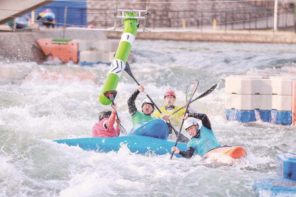 参赛选手在南安皮划艇激流回旋基地一显身手。