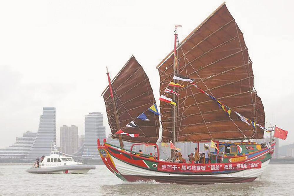 郑水土领衔设计建造的17.6米长明代月港海外贸易帆船“浪荡子·马可波罗号”(资料图片)