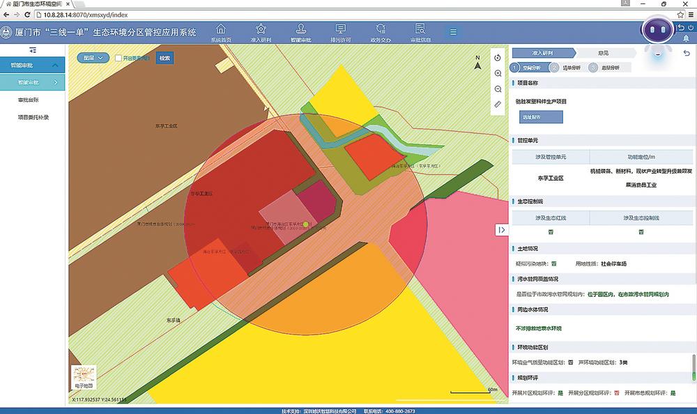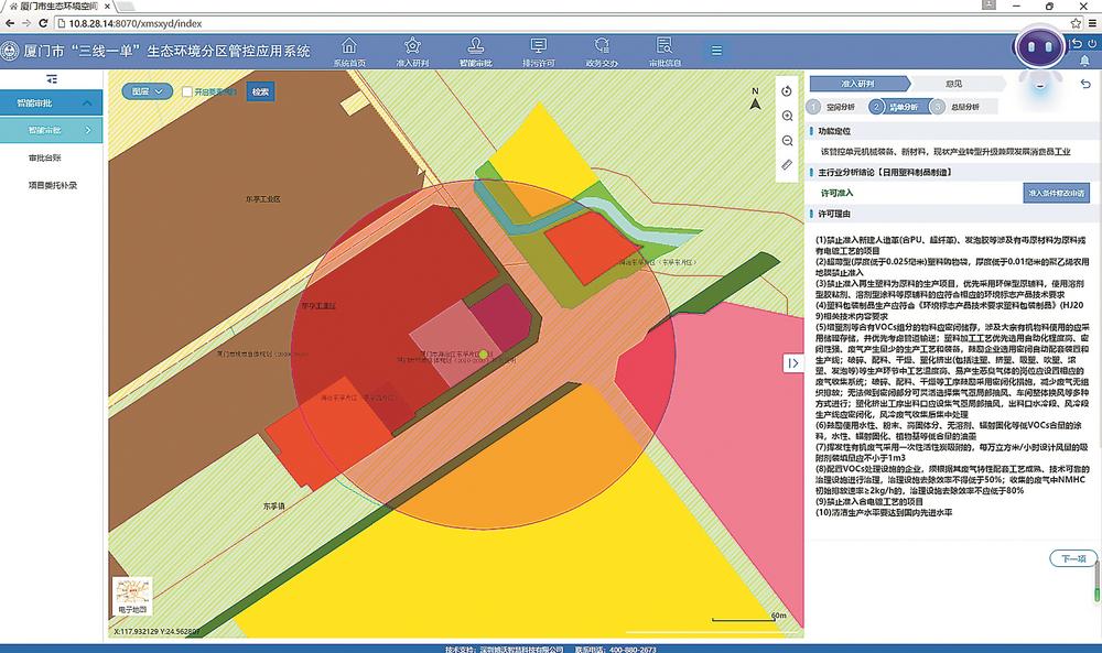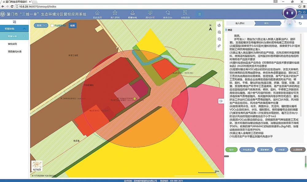 2020年,“生态环境分区管控应用系统”正式上线,融合了239个矢量图层、107713条环境准入条件,为建设项目提供全周期服务支撑,实现智能研判、选址导引。