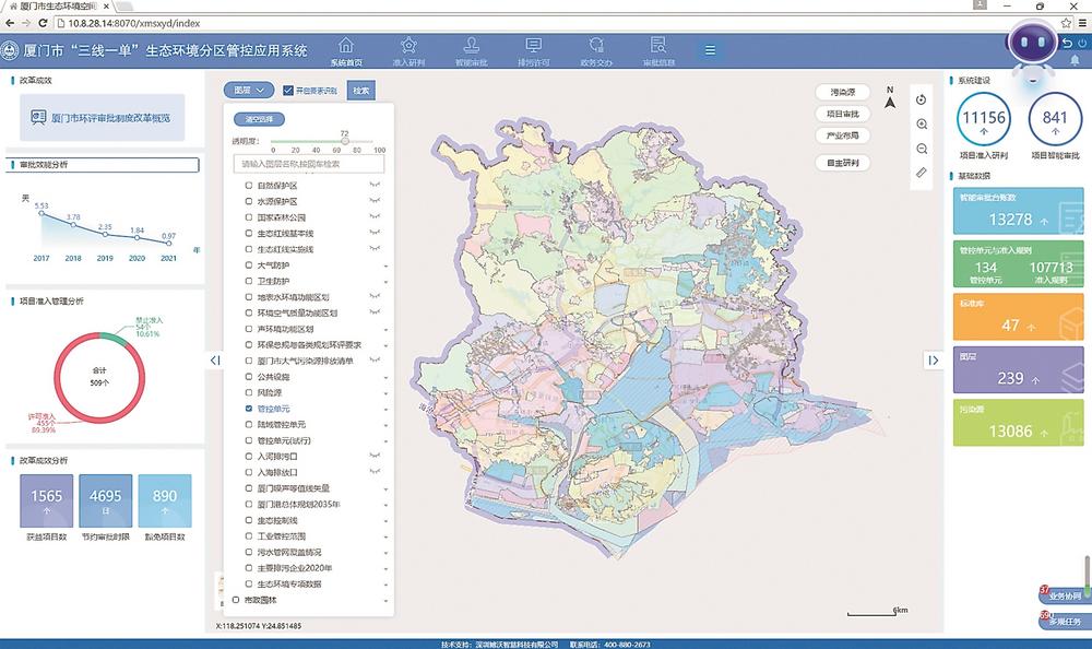 不仅应用系统,厦门的生态环境准入清单、生态环境“三线一单”应用平台、分行业生态环境准入清单、“生态环境分区管控与国土空间规划衔接试点”等一系列改革创新成果都走在全国前列,获得生态环境部的高度肯定。