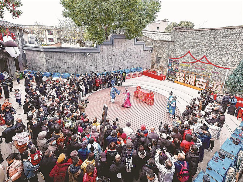 游客在螺洲古镇欣赏民俗演出。实习生 洪昊扬 记者 游庆辉 摄