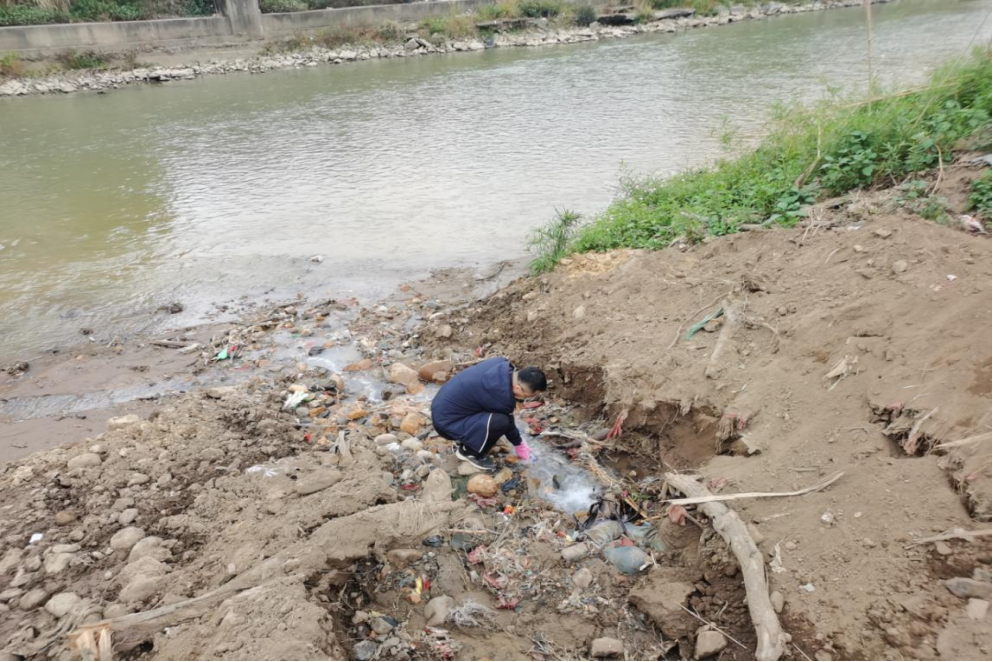 2023年11月,中央第一生态环境保护督察组在龙岩市对入河生活污水进行现场取样