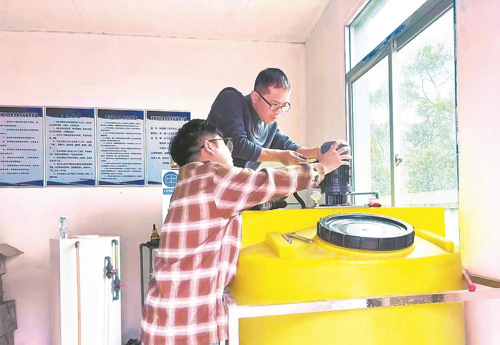 在福州市长乐区洋屿村供水站,管护公司技术人员在维修水厂泵机。(长乐区水利局供图)