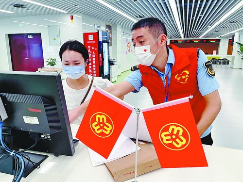 市场监管部门不断优化营商环境,图为注册窗口导办人员正在为前来咨询的办事群众答疑解惑。(提供:厦门市市场监管局)