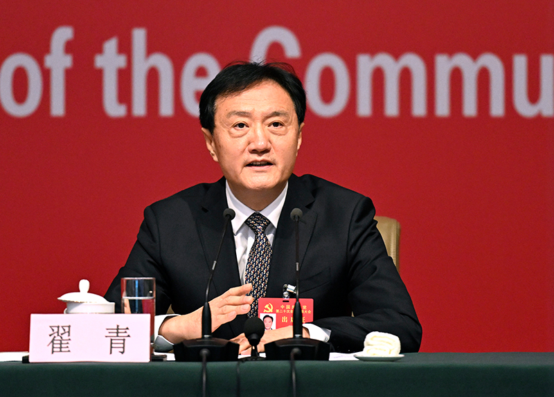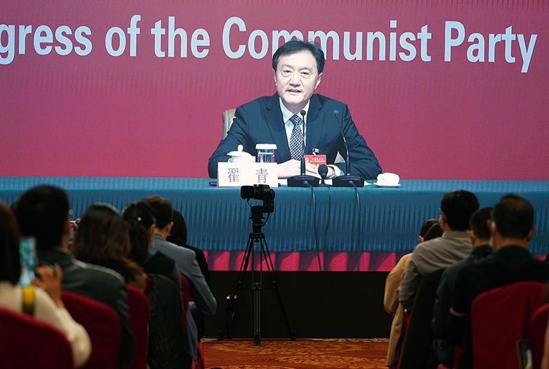 10月21日,中国共产党第二十次全国代表大会新闻中心举行记者招待会。生态环境部党组成员、副部长翟青围绕“建设人与自然和谐共生的美丽中国”主题与记者交流。