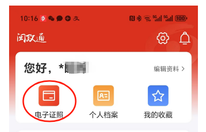 打开“闽政通”APP,点击页面右下角“我的”——“电子证照”,即可按提示申领注册会计师证书电子证照。