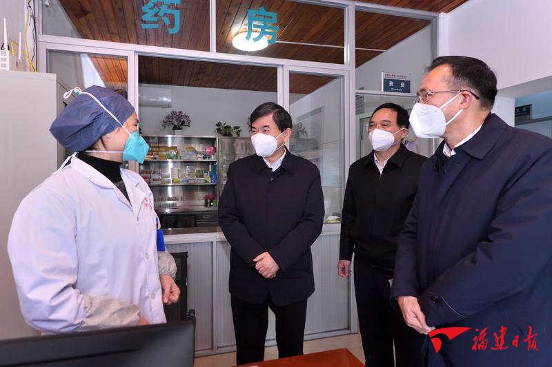 永泰作为国家级县域紧密型医共体建设试点县,积极探索以县总医院统筹调配县乡村医疗资源,有力有效做好疫情防控工作。周祖翼一行来到赤锡乡卫生院,察看药房、预防接种室、远程会诊室、心电图室,详细了解医务人员配置和发热门诊接诊、就诊分诊流程、药品储备、疫苗接种、应急救治等工作,要求加强解热镇痛药、中药等抗疫药品的配备,加强对发热患者的分级处理和精准诊疗,加强重症患者转运救治的协同配合,切实加大对农村的倾斜支持力度。周祖翼还看望慰问了正在值班的医务工作者,感谢他们的辛勤付出,叮嘱大家一定要保重身体,更好服务群众。