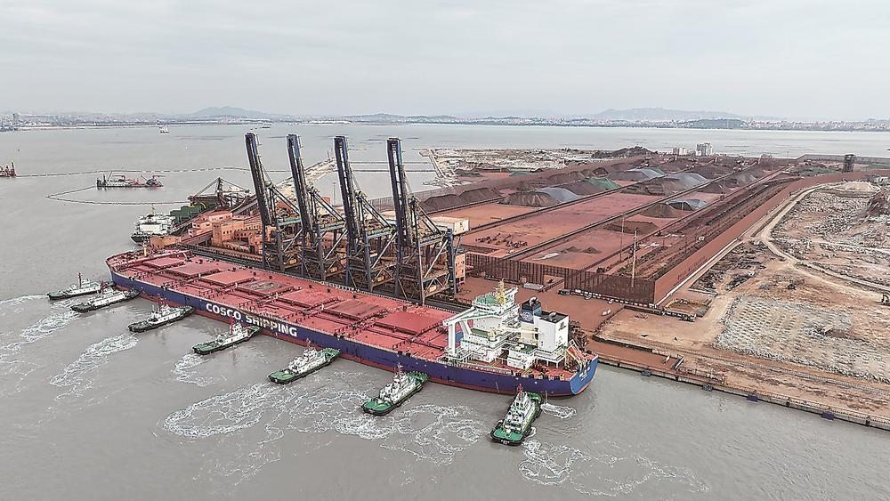 罗屿作业区作为东南沿海最大的铁矿石中转枢纽和福建首个、全国第六个可停靠40万吨级船舶的深水良港,如今已实现超大型矿石船接卸常态化。来自巴西、澳大利亚等国的铁矿资源经这里中转至长江中下游各省,以及韩国、东南亚等国家和地区,串联起内陆腹地与全球市场的贸易纽带,更撑起了两岸铁矿石中转的“半壁江山”。