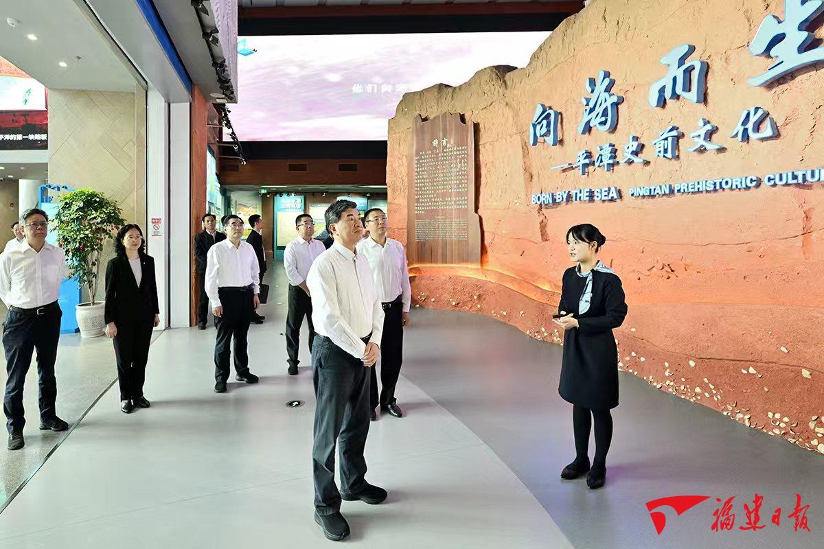 平潭壳丘头遗址被考古学界认为是海峡两岸史前文化同根同源的重要证据。周祖翼走进中国考古博物馆壳丘头分馆,详细察看文物展陈、考古研究成果及文创产品,叮嘱有关负责人要加强历史文化遗产保护利用,完善科学保护规划,开展系统、精细化挖掘研究,推出一批有分量、有深度的标志性考古成果;进一步规范和优化展陈设计,不断丰富科普教育、研学实践、文化体验等功能。要加大宣传力度,加强与太平洋岛国、海峡两岸之间的文明溯源和文化交流,推进闽台历史文化研究,拉紧闽台情感纽带。
