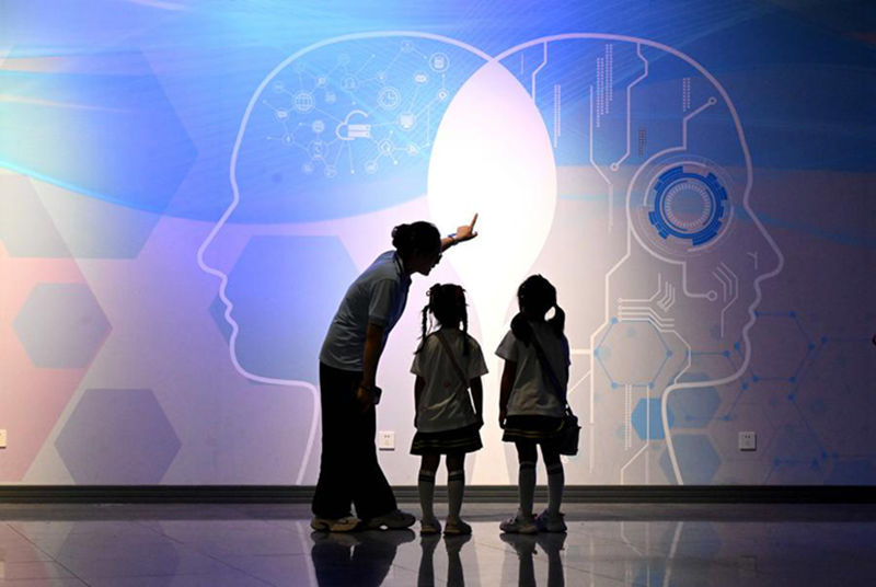 Children visit a science and technology hall in Shijiazhuang city of North China's Hebei province, July 11, 2025. [Photo/Xinhua]