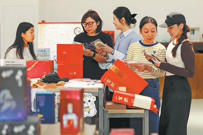 Visitors examine products by Fujian-based Taiwan entrepreneurs at an industrial innovation center in Fuzhou in October. [Photo by Xie Guiming/China News Service]