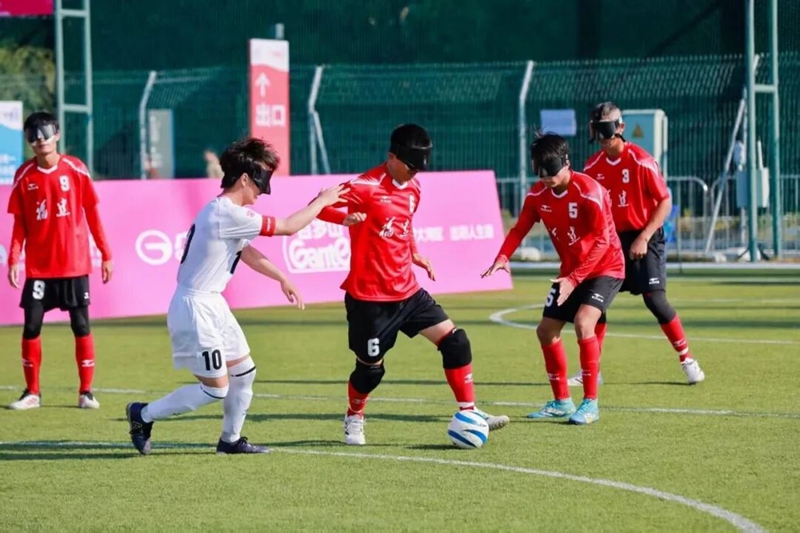 Blind soccer is a five-a-side sport played by athletes wearing eyeshades who navigate via bells placed inside the ball. China introduced blind soccer in 2003, with the Fuzhou School for the Blind launching its program in October 2005 to support national team recruitment ahead of the 2008 Beijing Paralympic Games.