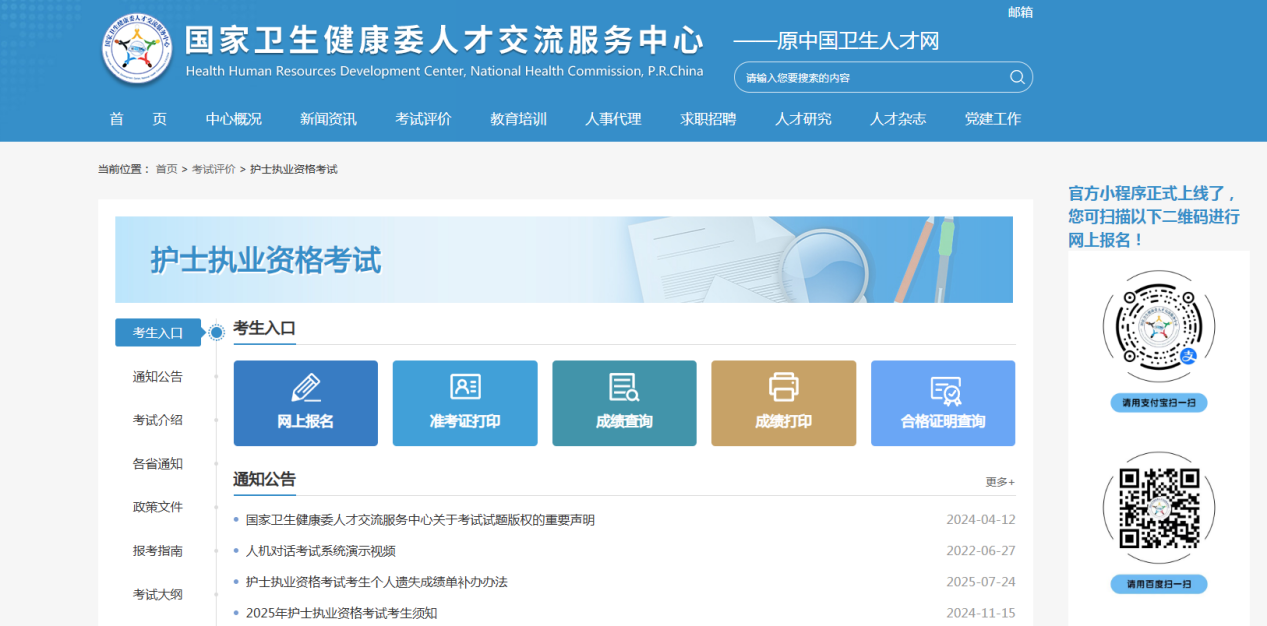 国家卫生健康委人才交流服务中心 > 护士执业资格考试 > 考试入口