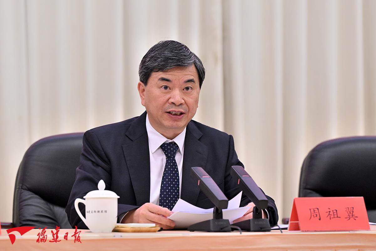 周祖翼指出,福建省政协始终高举爱国主义、社会主义旗帜,坚持党对政协工作的全面领导,牢牢把握团结和民主两大主题,主动融入中心工作,认真履行政协职能,为福建各个历史阶段的事业发展作出了重要贡献。新时代新征程,要在总结成就经验中更加坚定制度自信,进一步发挥人民政协的优势和作用,奋力推进新时代人民政协工作高质量发展,为推动中国式现代化福建实践广泛凝聚人心、凝聚共识、凝聚智慧、凝聚力量。一要在加强思想政治引领上有新提升。完善落实党对政协工作全面领导的制度规定,把加强政治建设摆在首要位置,不断提高政治判断力、政治领悟力、政治执行力,引导推动各党派团体、各族各界人士进一步实现政治上团结合作、思想上共同进步、行动上步调一致。二要在服务中心大局上有新作为。自觉把政协工作放到全国和全省发展大局中去谋划推进,充分发挥人才荟萃、智力密集的优势,聚焦进一步全面深化改革、推进中国式现代化福建实践的重点难点问题,组织开展调研,深入推进协商议政,增强民主监督实效,助推党中央决策部署和省委工作要求落地落实。三要在广泛凝聚共识上有新举措。完善发挥统一战线凝聚人心、汇聚力量政治作用的工作机制,围绕加快两岸融合发展示范区建设深入协商建言,健全与港澳闽籍爱国社团交流机制,持续打好新时代新“侨牌”,助力我省打造中华民族团结进步的窗口,把人民政协的制度优势转化为服务基层治理效能。四要在深化协商民主实践上有新突破。着力健全协商民主制度机制,把政协协商纳入党委决策程序,提高协商民主制度化、规范化、程序化水平,健全深度协商互动、意见充分表达、广泛凝聚共识的机制,真正通过协商出办法、出共识、出感情、出团结。五要在加强队伍建设上有新成效。广大政协委员要珍视政治身份,锤炼政治品格,提高政治能力,当好人民政协制度的参与者、实践者、推动者。要严把委员入口关,尊重和保障委员民主权利,建设一支懂政协、会协商、善议政、守纪律、讲规矩、重品行的政协委员队伍。