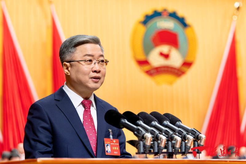 12日,省政协主席滕佳材代表十三届省政协常委会向大会作工作报告。记者 林熙 摄