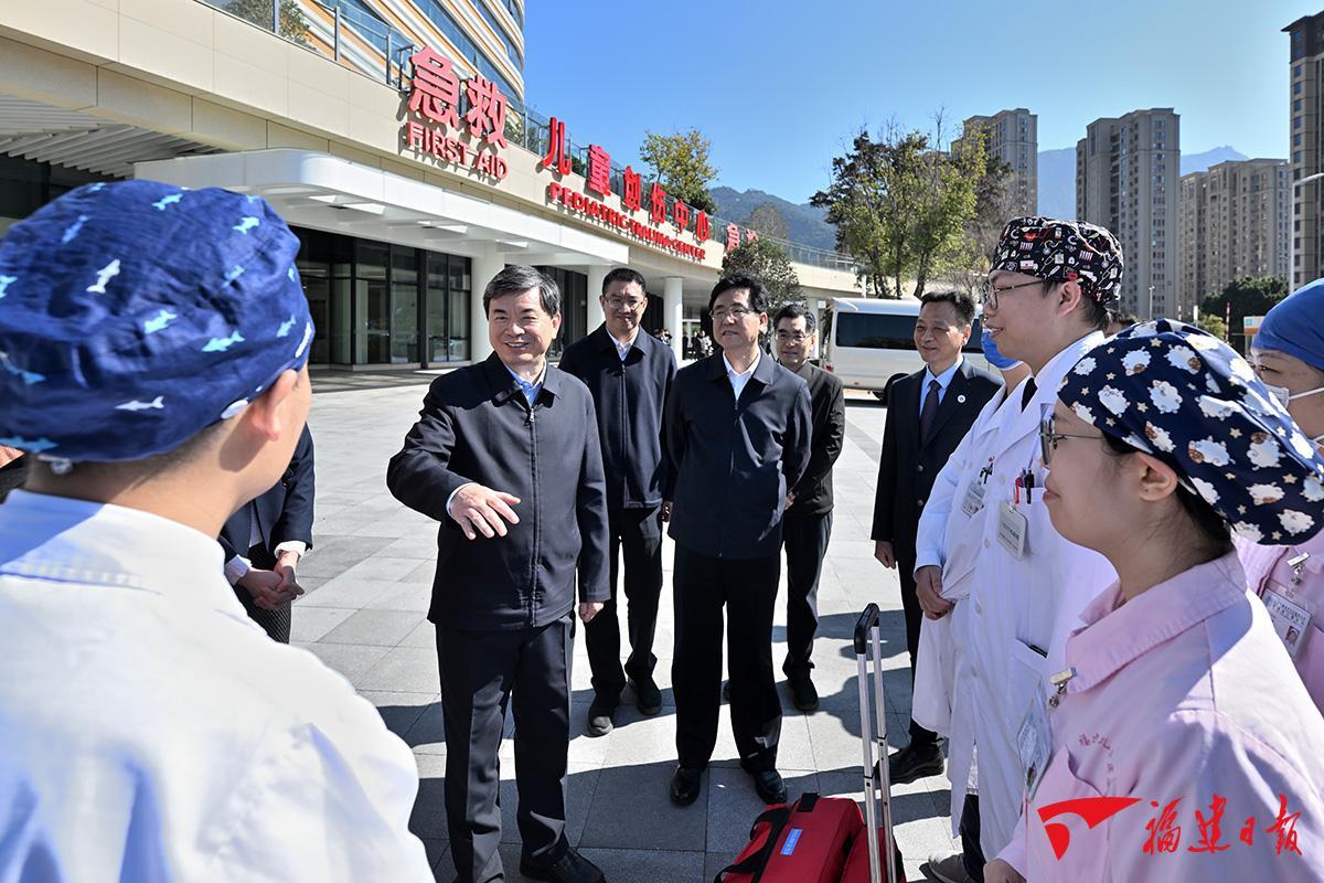 省儿童医院是我省国家区域医疗中心项目之一,春节期间医院开放节假日门诊、急诊24小时开诊、互联网医院正常开诊,以满足市民就医需求。走进医院,周祖翼、赵龙认真了解区域医疗中心建设和接诊数量、医护力量、设备配置等情况,深入内科、急诊科,察看重症转运救护车,看望慰问医务人员,充分肯定他们忘我付出、守护生命。周祖翼说,近期冬春季流感疫情较为高发,春节人员流动频繁,风险增高。希望大家弘扬崇高职业精神,加强流感疫情防控,优化门诊急诊运行制度,提供优质高效的健康服务,保障群众健康过大年。