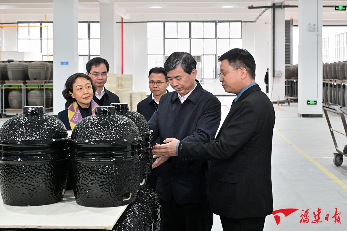 闽清陶瓷产业历史悠久,近年来当地致力于推动传统产业转型升级,有效减少了污染物排放。周祖翼来到阿普莱斯集团坂东产业园,了解企业产品市场应用、外贸出口等情况,听取企业加快工艺升级改造、节能减排、向绿色制造转型等经验做法。周祖翼叮嘱当地要发挥传统优势,持续做大做强实体经济,引导更多陶瓷企业加快动能转换、优化工艺,推动产品结构多元化,提升产业附加值,严格安全生产管理,推动陶瓷产业实现绿色、可持续、高质量发展,不断塑造发展新优势。