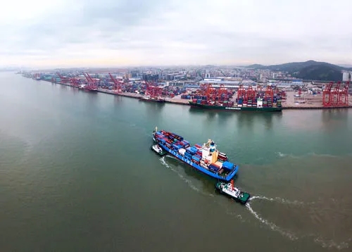 在福建自贸区厦门片区东渡港区,一艘货轮向码头靠拢。新华社记者姜克红/摄