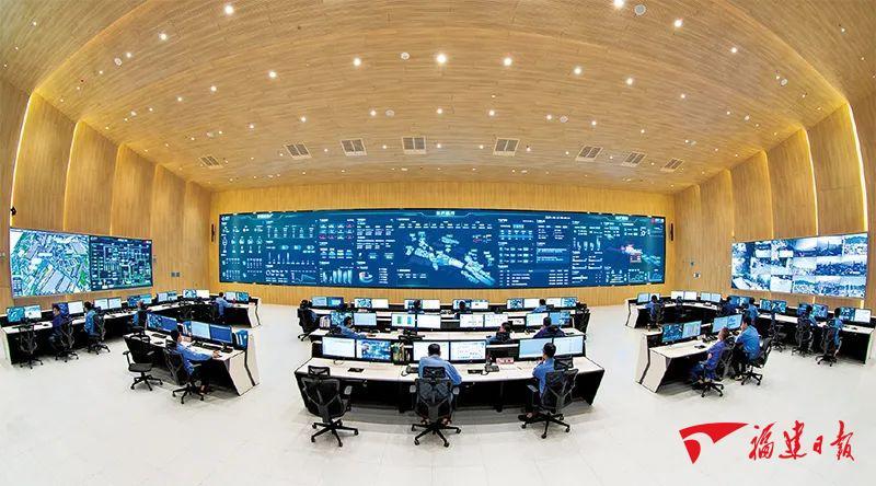 福建省三钢(集团)有限责任公司积极转型升级,计划投资95.1亿元发力产能提升、智能制造,预计运营成本降低20%以上、能源利用率提高10%以上。图为三钢闽光大数据中心管控中心大厅,值班员正在现场观测数据。福建日报社供图