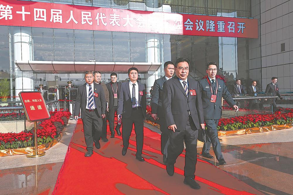 代表们步履坚定地走出会场,满怀信心地奔赴各自工作岗位。记者 游庆辉 摄