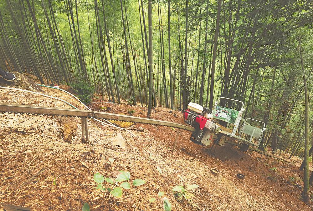 就这样,被寄予厚望的“小火车”,开始驶向全省丘陵山区,在广大果园、茶山、竹林大显身手。2012年,永安果农吴光选在自家40多亩果园内,架设了全市第一条500米山地轨道。