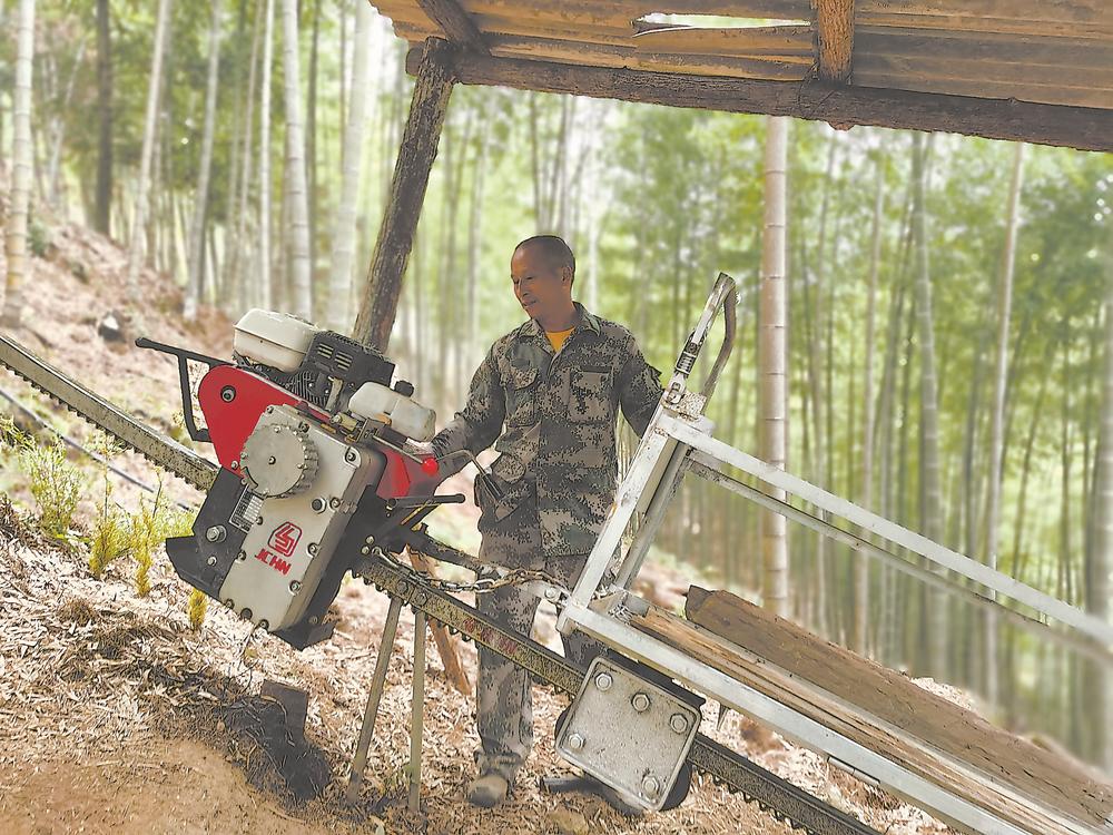 永安市林农杨兴寿在操作“小火车”。