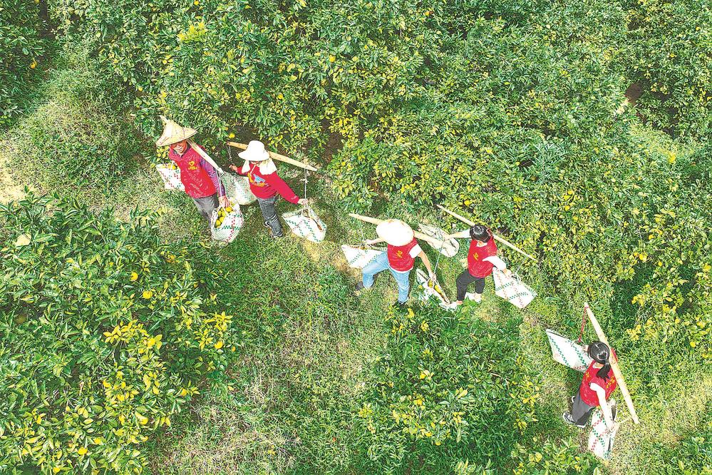 我省多数山区,水果、茶青等都是依靠双肩挑下山的。谢贵明摄于南安市金淘镇中心村
