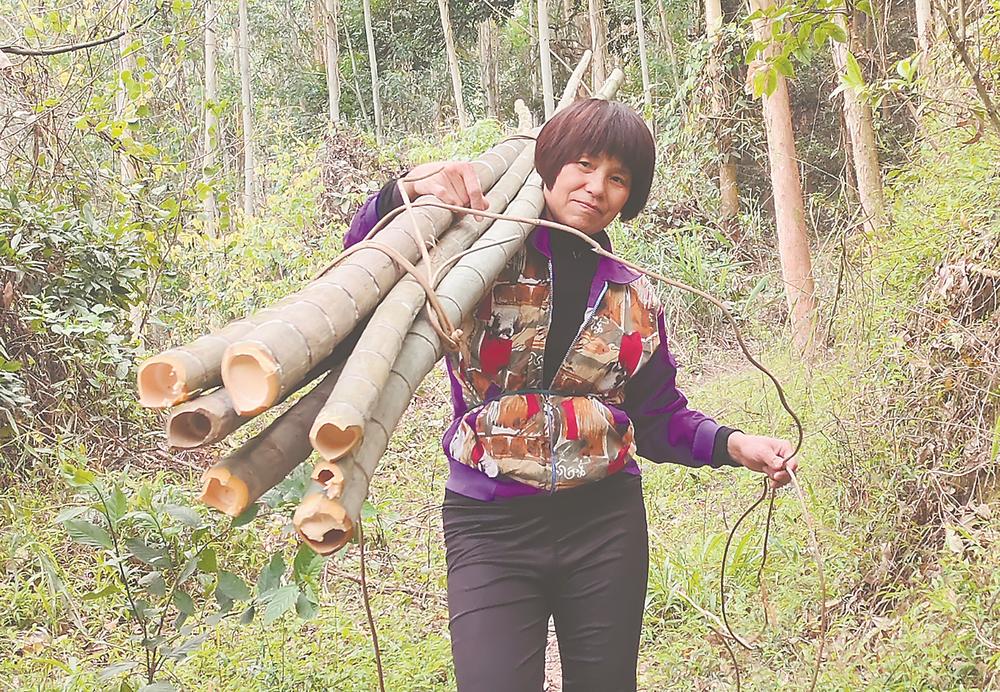 扛着毛竹下山,是个重体力活。陈建和摄于漳州市龙海区程溪镇东马村