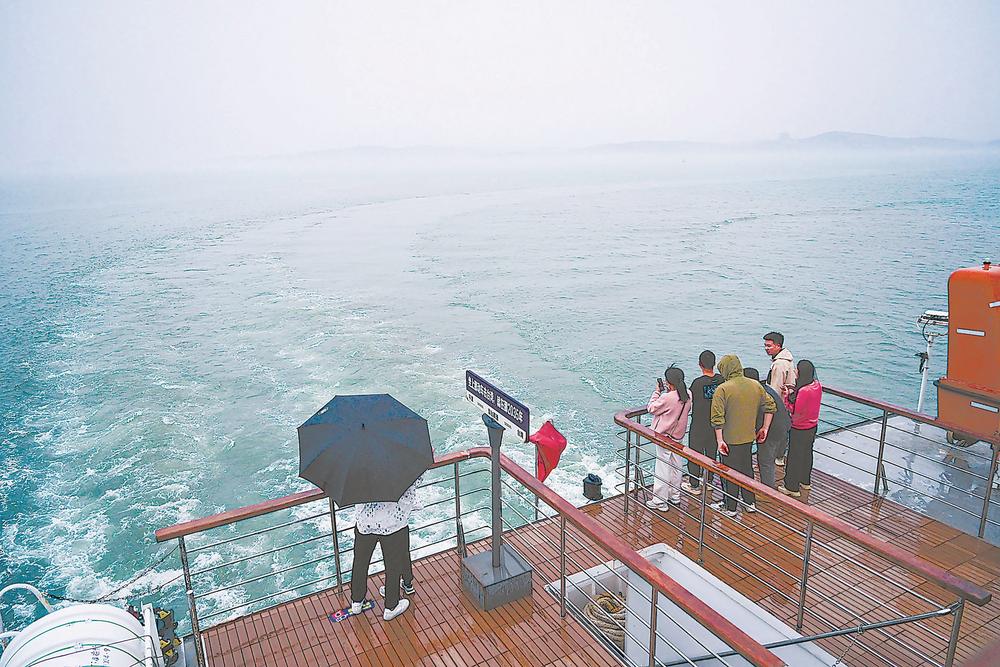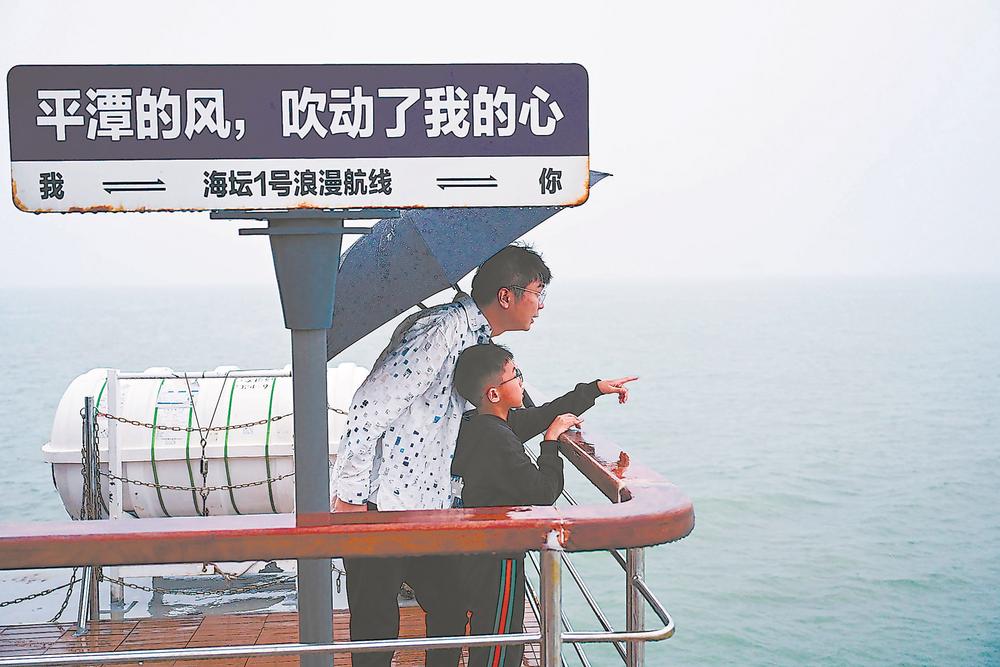 游客在“海坛1号”上欣赏海景。江信恒 摄