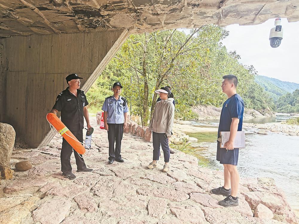 近日,武夷山九曲溪迎来市民、游客游泳、戏水的高峰期,武夷山市星村镇河长办工作人员在九曲溪沿岸开展防溺水宣传劝导工作。(吴政德 摄)