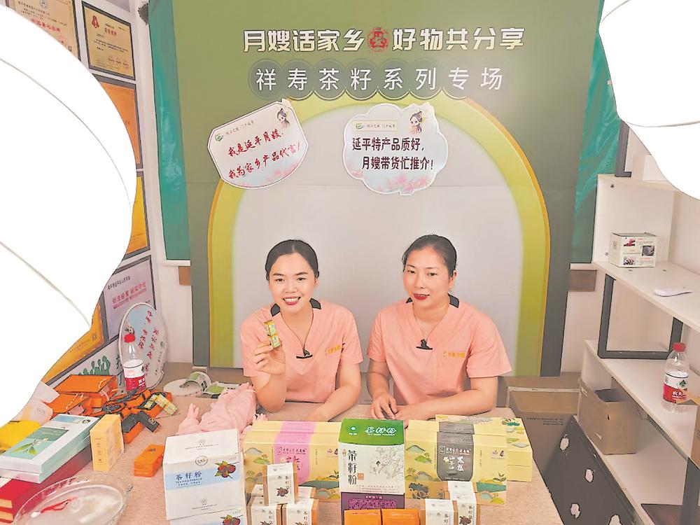 月嫂走进直播间,结合育婴知识推介南平山茶油产品。