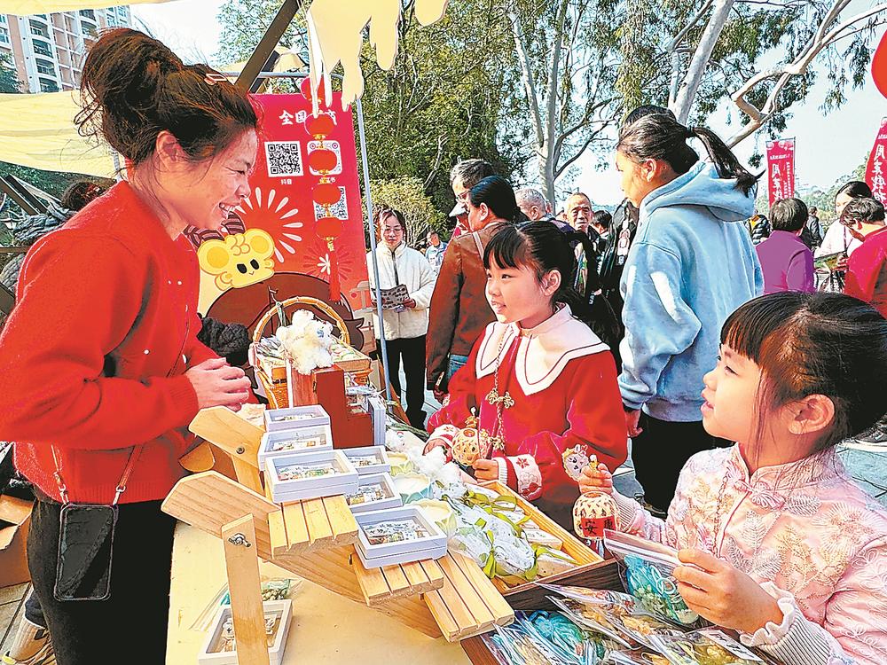 人们沉浸式看戏的同时,第七届文创市集也在西湖公园热闹开市。非遗手工、潮玩文创、福茶福味等特色摊位,让观众在开心看戏的同时,挑选着心仪的创意小物件,感受创意与文化的魅力。(记者 郭斌 通讯员 邓斯妮)